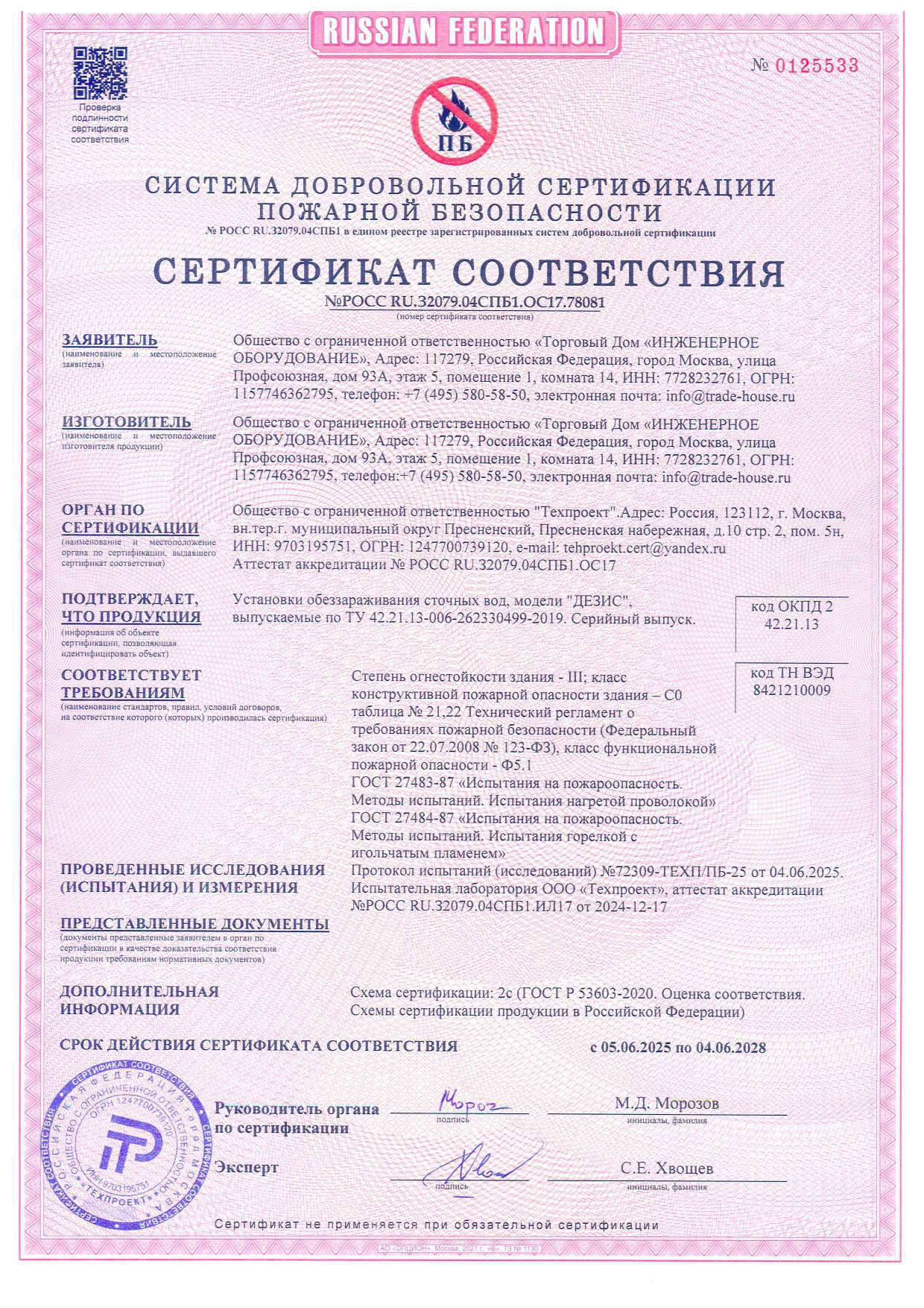 "ДЕЗИС" - надёжная установка для обеззараживания инфицированных стоков. Широко применяется в туберкулёзных диспансерах и медучреждениях, где лечат инфекционные заболевания. Подходит для других аналогичных объектов.