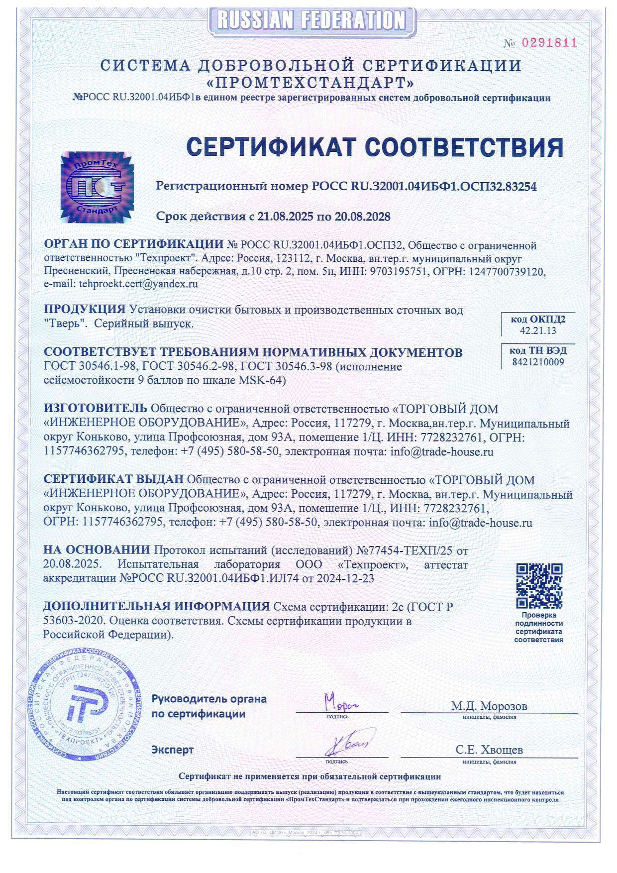 "ТВЕРЬ" - высокоэффективная и надёжная установка очистки бытовых сточных вод. Оборудование предназначено для глубокой механической и биологической очистки, доступен широкий модельный ряд, система подбирается по требованиям заказчика.